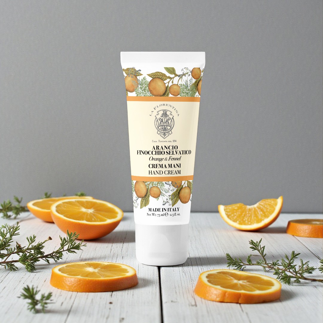 La sua texture cremosa ma leggera avvolge la pelle in un’idratazione immediata e profonda, lasciando le mani morbide, vellutate e piacevolmente profumate. L’arancio dolce 🍊 illumina e ravviva, mentre il finocchio selvatico 🌿 aggiunge una nota aromatica erbacea, unica e rigenerante.