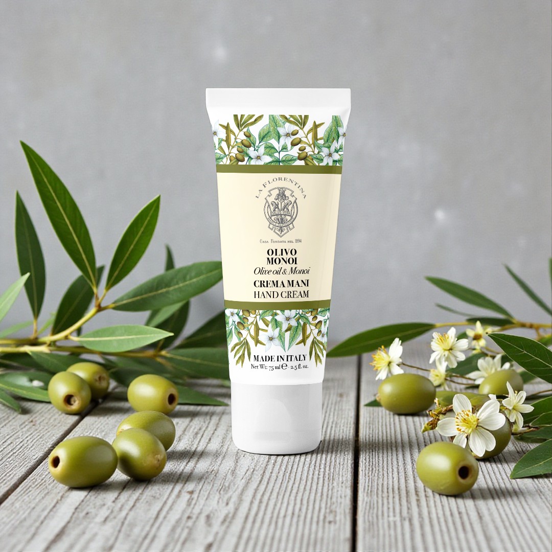 La Crema Mani Olivo & Monoi è una coccola vellutata e avvolgente per le tue mani🤲.