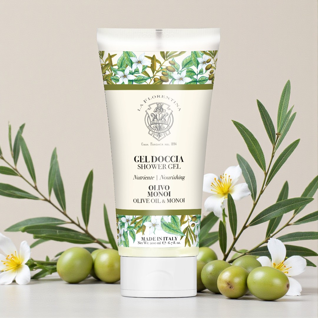 Il Gel Doccia Olivo & Monoi La Florentina nasce dalla storica tradizione cosmetica fiorentina dal 1894 🇮🇹, formulato per detergere delicatamente la pelle nutrendola in profondità e lasciandola morbida, elastica e luminosa ✨🛁.
